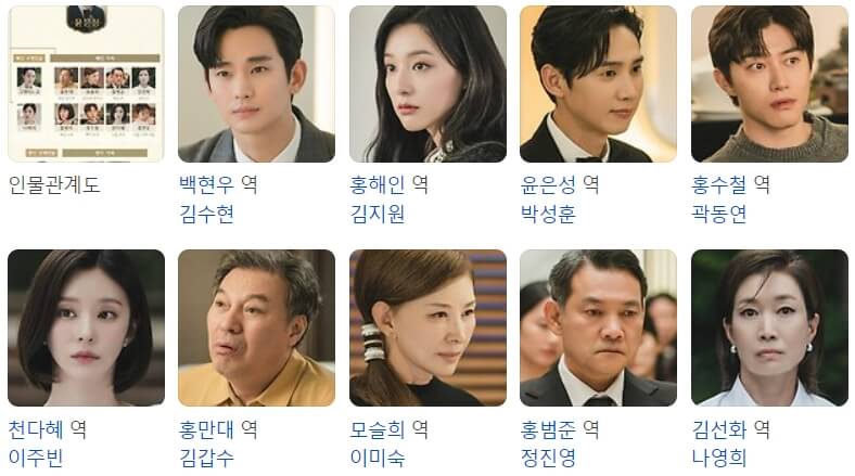 줄거리: 퀸즈 그룹의 재벌 3세이자 퀸즈백화점 사장 홍해인 (김지원 분)과 용두리 마을 이장의 아들 백현우 (김수현 분)는 3년 차 부부이로 백현우는 재벌 집안의 처가살이와 아내의 눈치를 보며 힘든 결혼생활을 이어갑니다. 백현우는 결국 이혼을 결심하고 아내 홍해인에게 이를 말하려 하는 순간 홍해인은 폭탄선언을 하고 둘의 관계가 예기치 못한 방향으로 나아가게 됩니다. 이들의 건조했던 관계는 점점 흥미로운 사건들을 맞이하며 서로의 매력을 다시 보게 되며 감정의 변화를 느끼게 됩니다.