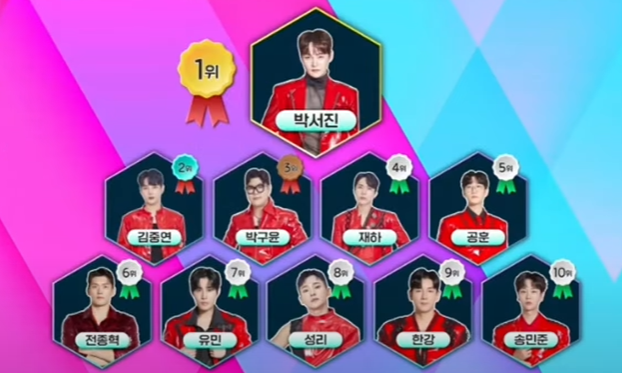 1위 박서진, 2위 김중연, 3위 박구윤, 4위 재하, 5위 공훈, 6위 전종혁, 7위 유민, 8위 성리, 9위 한강, 10위 송민준