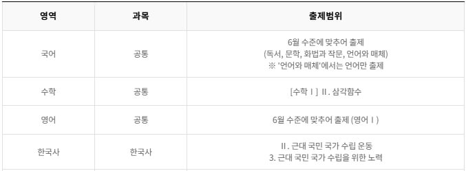 - 과목: 국어, 수학, 영어, 한국사, 사회탐구, 과학탐구
