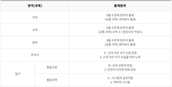 - 출제범위: 아래 표 참조 (사진을 누르면 크게 볼 수 있습니다.)