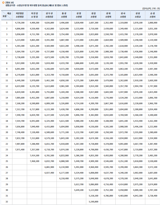 2025 경찰공무원 봉급표