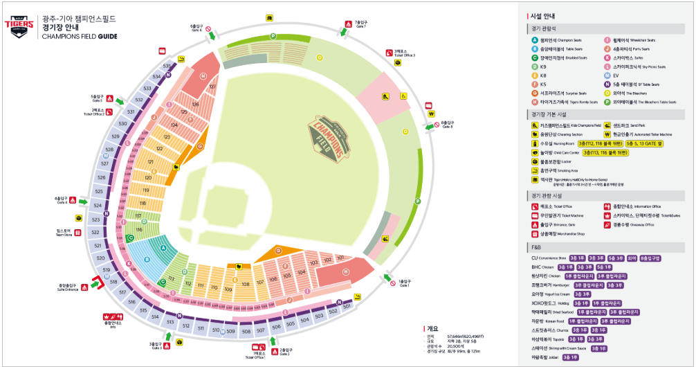 ✅ 기아 챔피언스필드는 20,500명을 수용할 수 있는 경기장으로 편안하고 즐거운 경기 관람을 위해 아래와 같은 시설이 마련되어 있습니다.