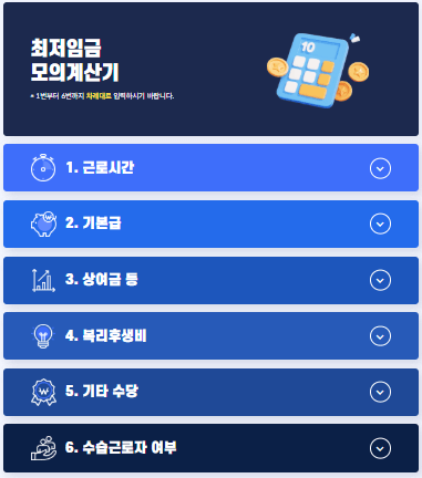 최저임금은 서민들의 소득과 생활에 큰 영향을 미치고 그에 따라 내수 경제 전체에 중요한 영향을 미치게 됩니다. 아래에서 2025년 최저임금 인상률, 주휴수당 계산방법 및 계산기, 실수령액 계산방법 및 계산기를 확인하실 수 있습니다.