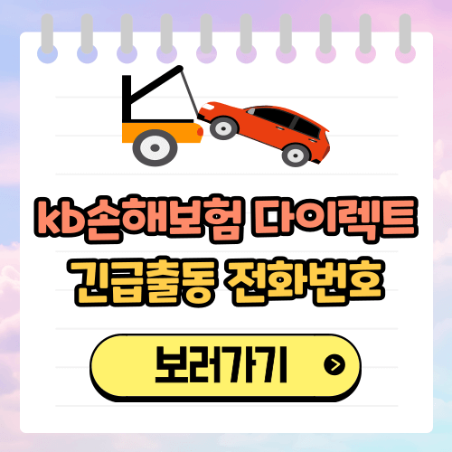KB손해보험 다이렉트 자동차보험 고객센터 (콜센터)에 전화하여 사고 및 고장 접수를 할 수 있습니다. 접수 후 현장출동요원이 현장으로 방문하여 상황에 맞는 조치를 취해주게 됩니다.